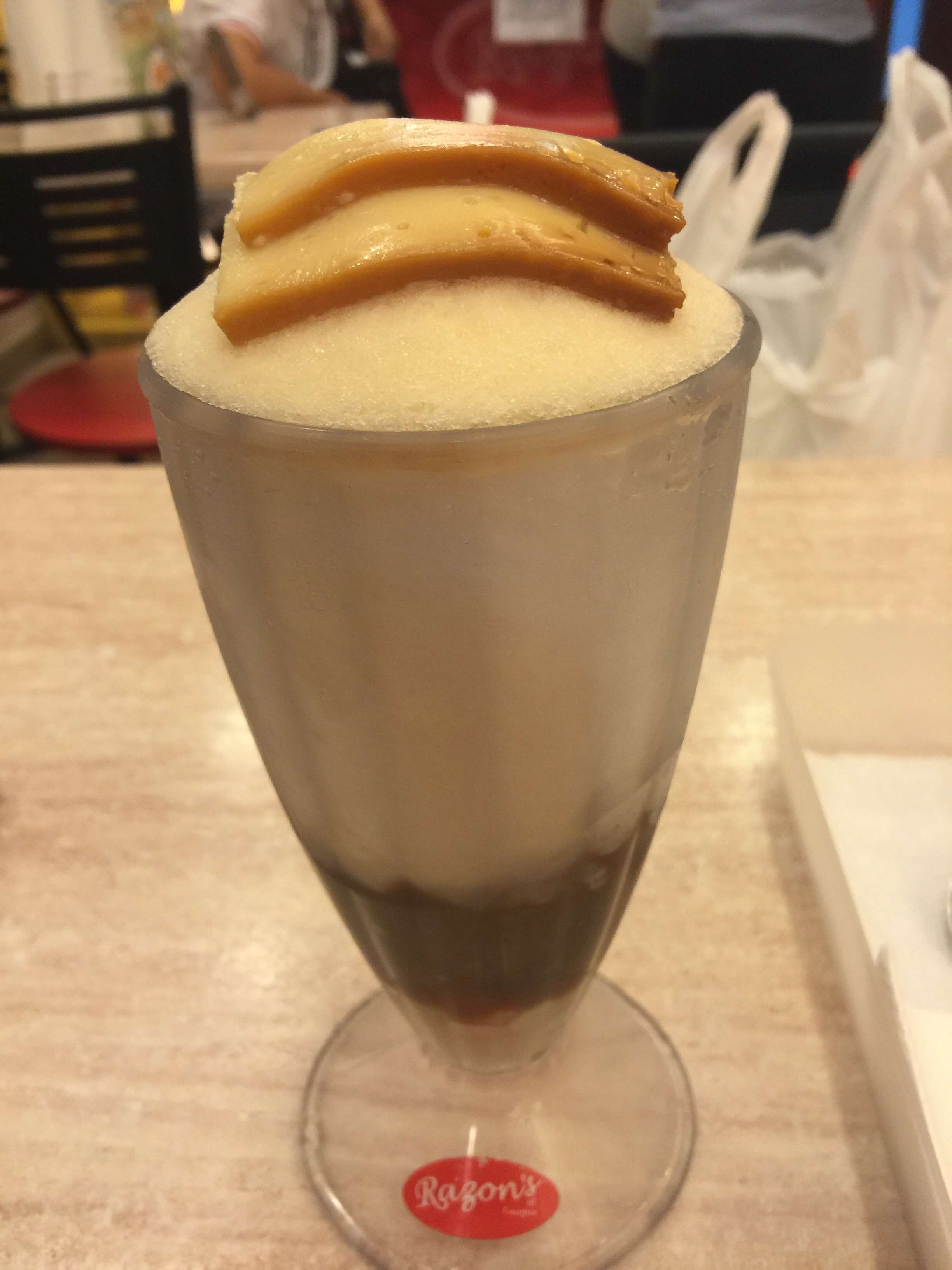 3 tbsp of sweetened plantains (saba). Razon's of guagua in sm manila. Stands for keso, langka, and mais. Dude for food is now on facebook, check out the fb page for regular updates on good eats. Perfect halo halo from razon's of guagua.